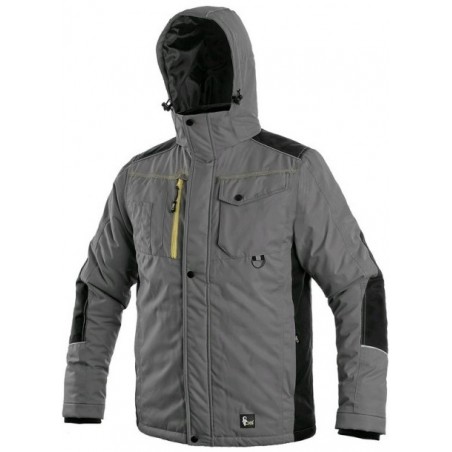 Pánská zateplená bunda, odolná proti vodě a větru, odepínací kapuce, vnitřní manžety v rukávech, plastové poutko pod svrchní kapsou, stahování v dolním okraji, lepené švy, TPU membrána, reflexní doplňky. Náprsní kapsy na zip nebo druky, dvě spodní kapsy na zip, 3 vnitřní kapsy.Svrchní materiál: 100 % polyester, Podšívka: 100 % polyester, Zateplení: 100 % polyester. Normy  EN ISO 13688, EN 14058. Barvy:  modro-černá, tmavě modro-černá, šedo-černá, béžovo-černá. Velikost: S-4XL. V barvě šedo-černá: S-5XL.