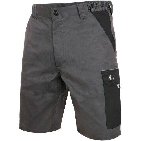Pánské montérkové kraťasy, pas s poutky na opasek, přední klínové kapsy, boční kapsa s klopou, kapsa na skládací/svinovací metr, zadní jednoduchá kapsa na pravé straně. Doporučené použití: letní pracovní oděv, stavebnictví, strojírenství,lehký průmysl, automobilový průmysl, logistika, skladová manipulace, spedice, autoservisy, údržba, montáže, zemědělství, učiliště, čerpací stanice, zahrada, hobby. Materiál: 65 % polyester 35 % bavlna, 190g/m2. Splňuje EN ISO 13688. Typy barev: šedo-modrá, šedo-červená, šedo-žlutá, šedo-černá. Velikost: 46-64. Barva šedo-modrá a šedo-černá ve velikosti 66 a 68.