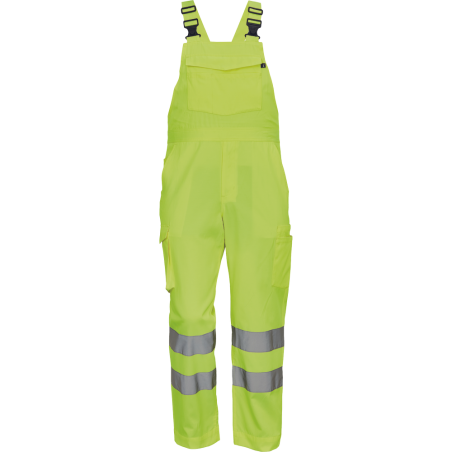 Pánské lehké full HI-VIS pracovní kalhoty s laclem a reflexními pruhy na nohavicích, elastický pas; 2 boční kapsy, 1 kapsička na mince; 2 multifunkční stehenní kapsy, 2 zadní kapsy; 1 velká multifunkční náprsní kapsa; elastické šle se zapínáním na spon; nastavitelná délka nohavic. Svrchní materiál: ...