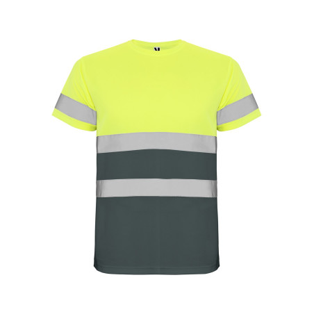 Vysoce viditelné, prodyšné triko. Kulatý výstřih ve stejné látce a zpevněné švy na průkrčníku. Dva reflexní pruhy na hrudi a jeden na rukávech. Certifikace CE podle normy: UNE-EN ISO 13688:2013/ A1:2021 a UNE-EN ISO 20471:2013/A1:2017. Třída I. Úplet: Hladký. Materiál: 100% polyester. Gramáž: 130g/m2. Typy barevného provedení: žlutá svítivě, oranžová svítivě, žlutá svítivě - modrá námořní, oranžová svítivě - modrá námořní, žlutá svítivě - modrošedá, žlutá svítivě - zelená. Velikosti: S-4XL.